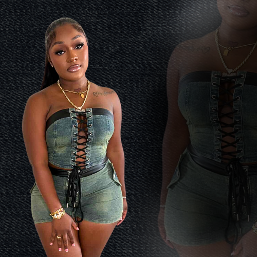Step into your power with this irresistible 2-piece set in Blue Jean and Black. Flattering and full of boss energy—perfect for making bold moves and turning heads.